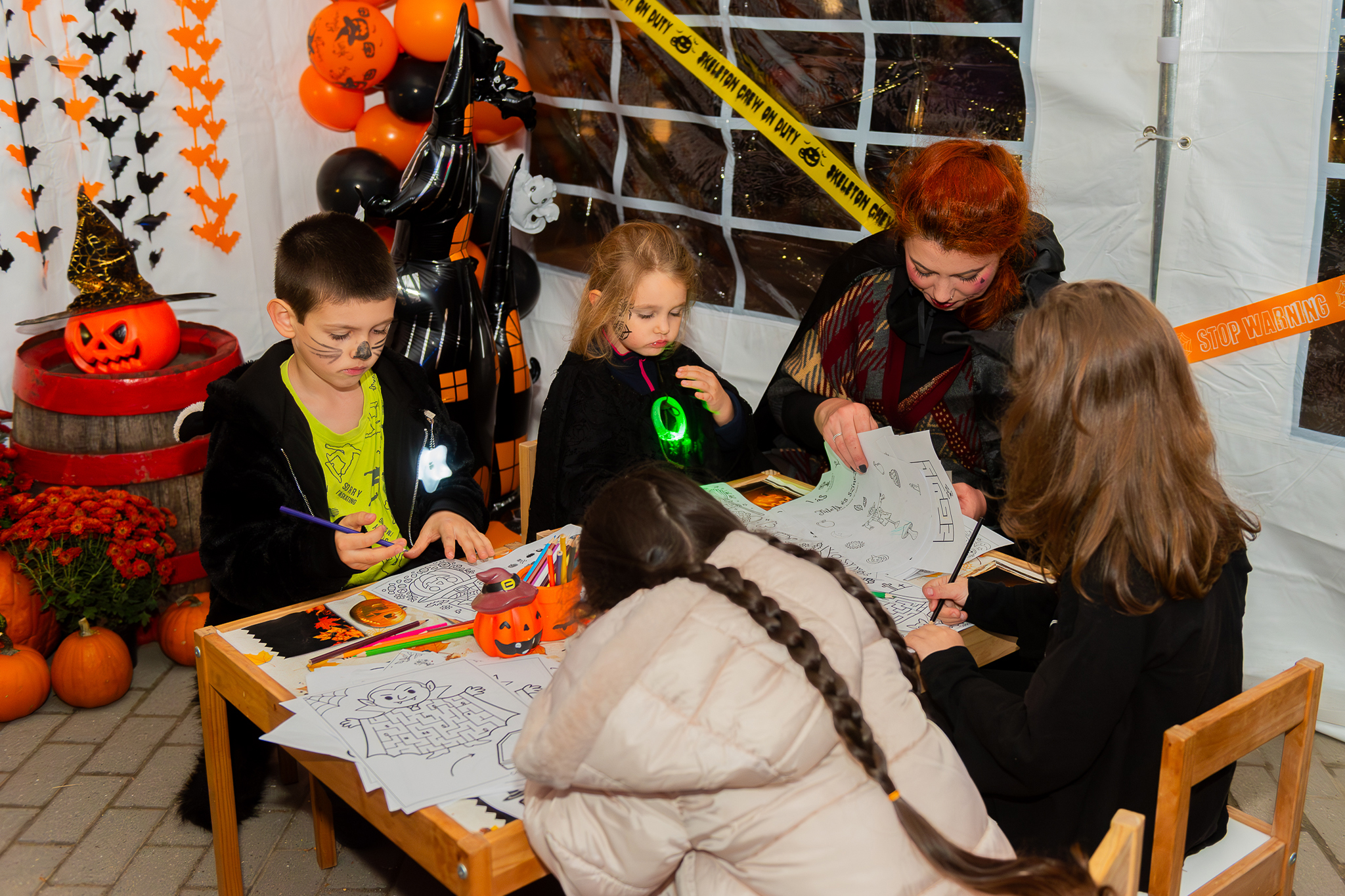 A kreatív sarok azoknak kedvezett, akik szeretnek alkotni: halloweeni színezők és foglalkozók várták az apró művészeket, akik szívesen vitték haza saját kis alkotásaikat emlékbe.